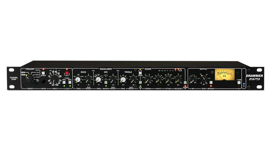 The new Drawmer 1979, a modern take on the classic channel strip that combines clarity, tone shaping, and vintage compression in a single 1U unit.
