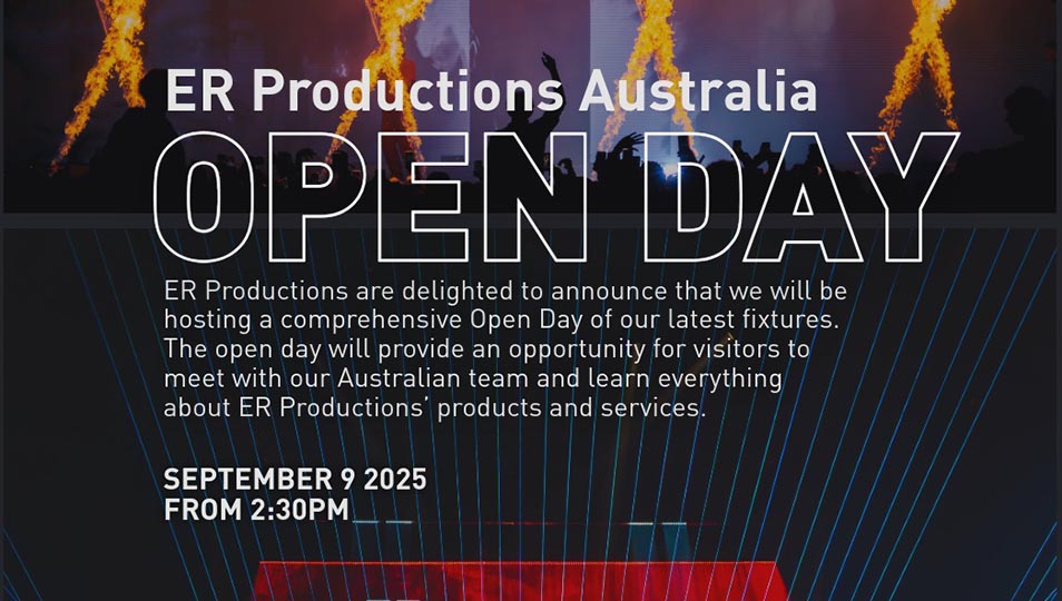 ER Productions are delighted to announce that we will be hosting a comprehensive Open Day of our latest fixtures. The open day will provide an opportunity for our visitors to meet with our Australian team and learn everything about ER Productions’ products and services.
