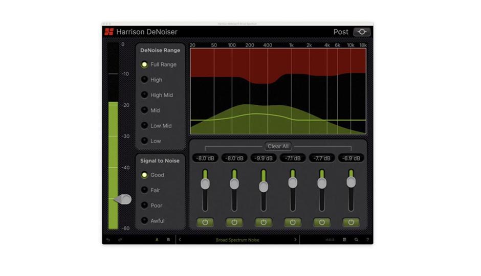 DeNoiser offers controls that allow users to target specific frequency ranges and noise types with precision. A dynamic spectrum display provides real-time visual feedback, while purpose-built presets offer fast answers common audio issues.