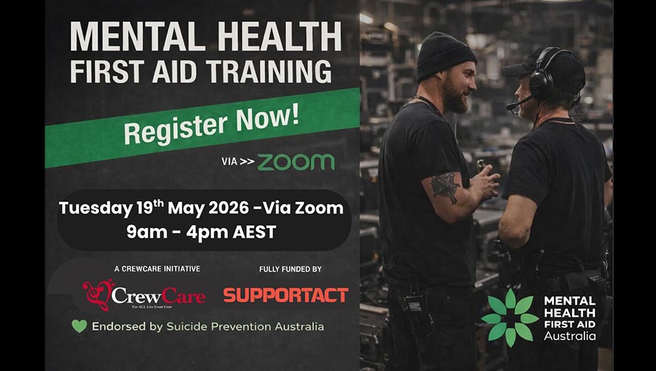 CrewCare has another Mental Health First Aid (MHFA) course coming up this May – fully funded for live event crew thanks to Support Act.